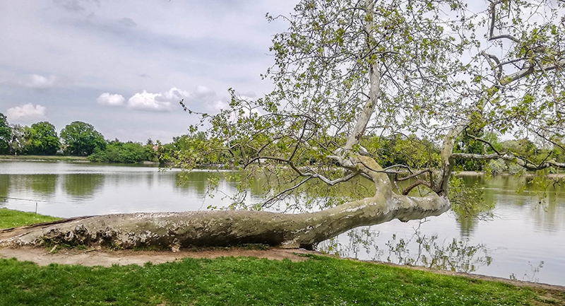 A tatai Angolkertben, a Cseke-tó partján található, szinte fekvő 250 éves platán nyerte el idén az Év fája címet az online megrendezett voksoláson.